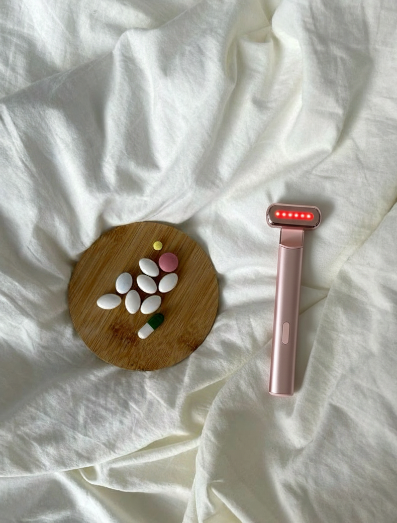 Musera’s 4-in-1 skincare wand combines red light therapy, galvanic current, therapeutic warmth, and gentle vibration to rejuvenate your skin from within. Together, they boost collagen, smooth fine lines, and enhance product absorption — revealing a firmer, brighter, more radiant complexion with every use.